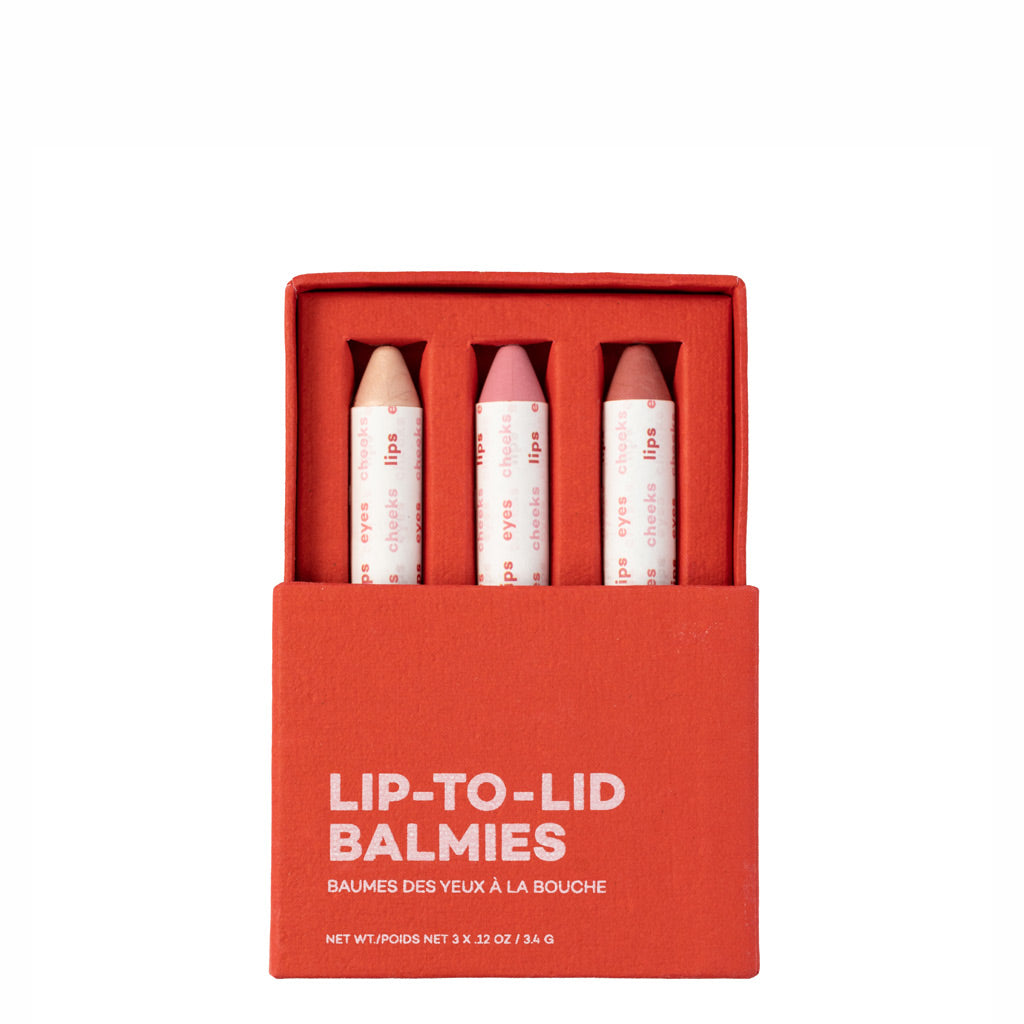 Axiology Balmie Set in Cotton Candy Skies is a trio of easily blendable, vegan mini crayons that can be used on eyes, lips & cheeks.