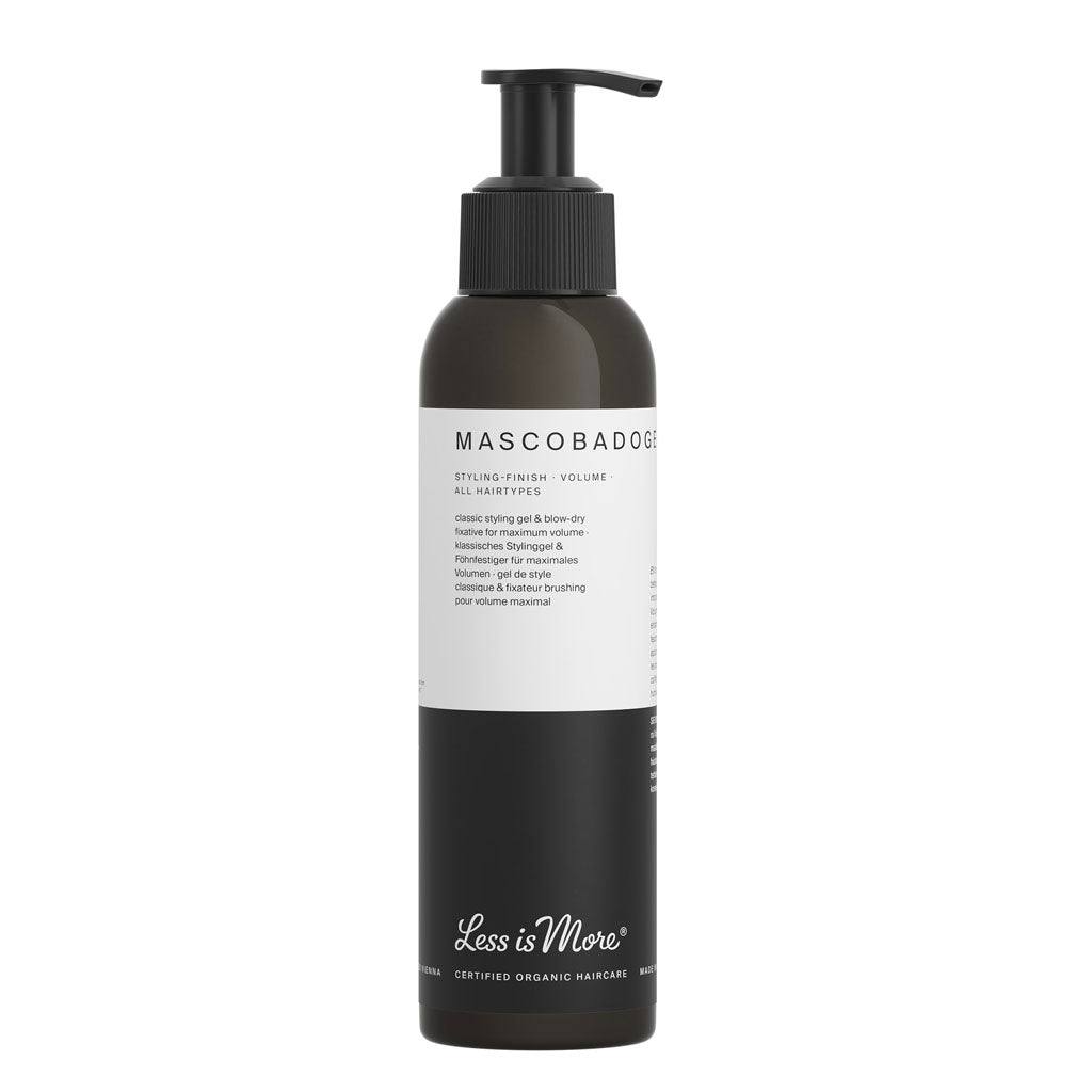 This Less is More Mascobadogel is versatile gel for strong hold, can be used as a classic styling gel and also as a fixing gel when blow drying to obtain maximum volume.