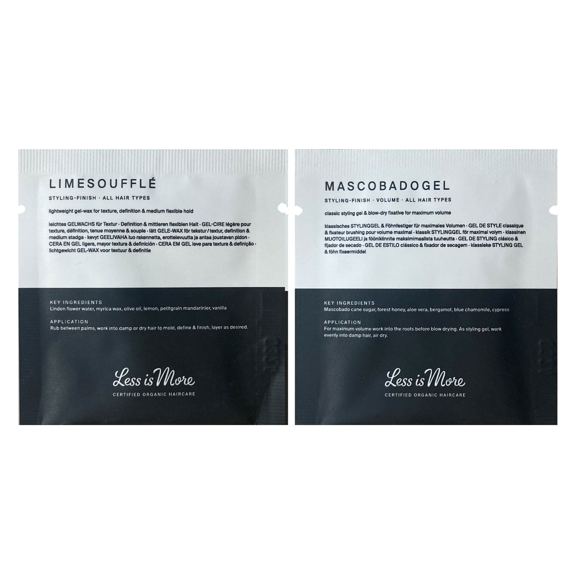 The Less Is More Styling Discovery Set contains two of the bestselling treatment products from the Less Is More Organic Haircare range.